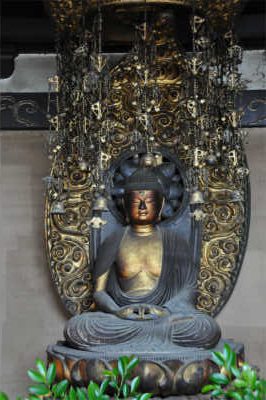 本尊・阿弥陀如来坐像。鎌倉時代後期の作で、定印を結んだ檜の寄木造、 頭部を含む全身は内刳りされています。白豪、肉髻珠には水晶が入っていて螺髪も 細かく、肉髻も割りに高く、全体に釣り合いがとれた立派な姿をしておられます。